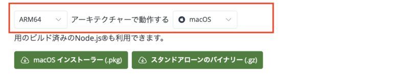表示されている Windows版 or Mac版 等を選択して、「LTS」版をダウンロード