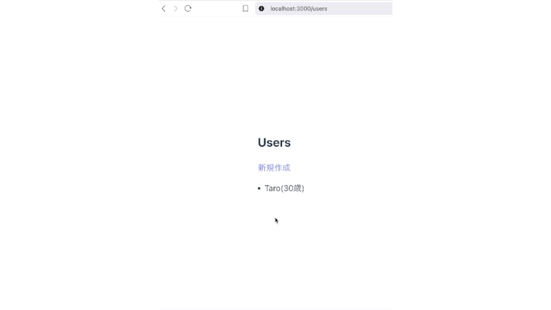 - /users/add にて再度、名前と年齢を入力し保存