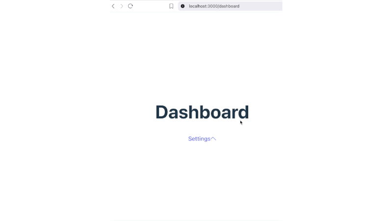 - /dashboard 画面の「Dashboard」表示と「Settingsへ」のリンク表示 、URL の確認