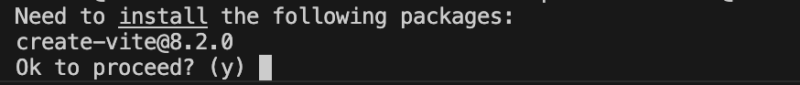 - 「npm create vite@latest」のコマンドを入力し、Enter キーを押す