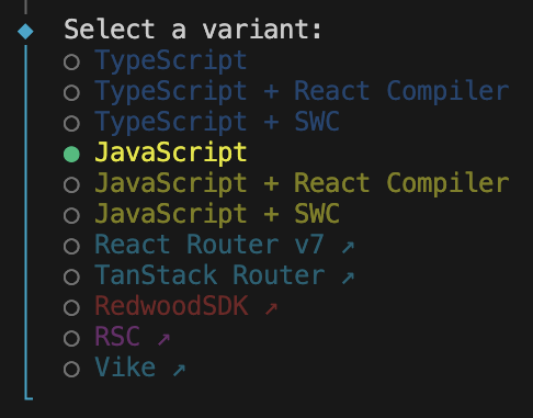 ④Rolldownの使用有無: No ※開発中のバンドラーのため、今回は使用しない。